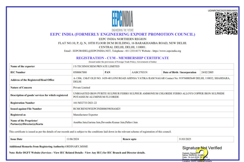 Established in 2007, JS Technochem Pvt. Ltd. has carved a niche as a trusted Sulphur powder manufacturer, Sulphur granules supplier, and iron pyrite exporter. With our roots in Meerut, Vadodara, and Navi Mumbai, our commitment to excellence has made us a preferred choice for Sulphur and iron pyrite needs.